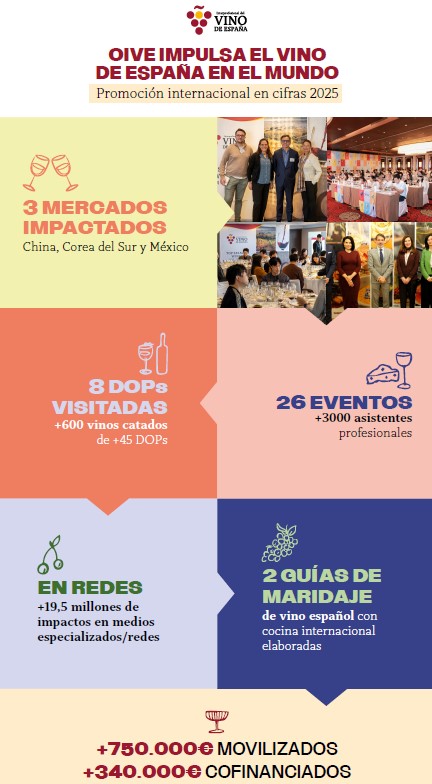La Organización Interprofesional del Vino de España (OIVE) continúa reforzando la proyección internacional del vino de España a través de un amplio programa de promoción con el que en 2025 consiguió llegar a más de 3.000 profesionales del canal HORECA procedentes de mercados estratégicos.